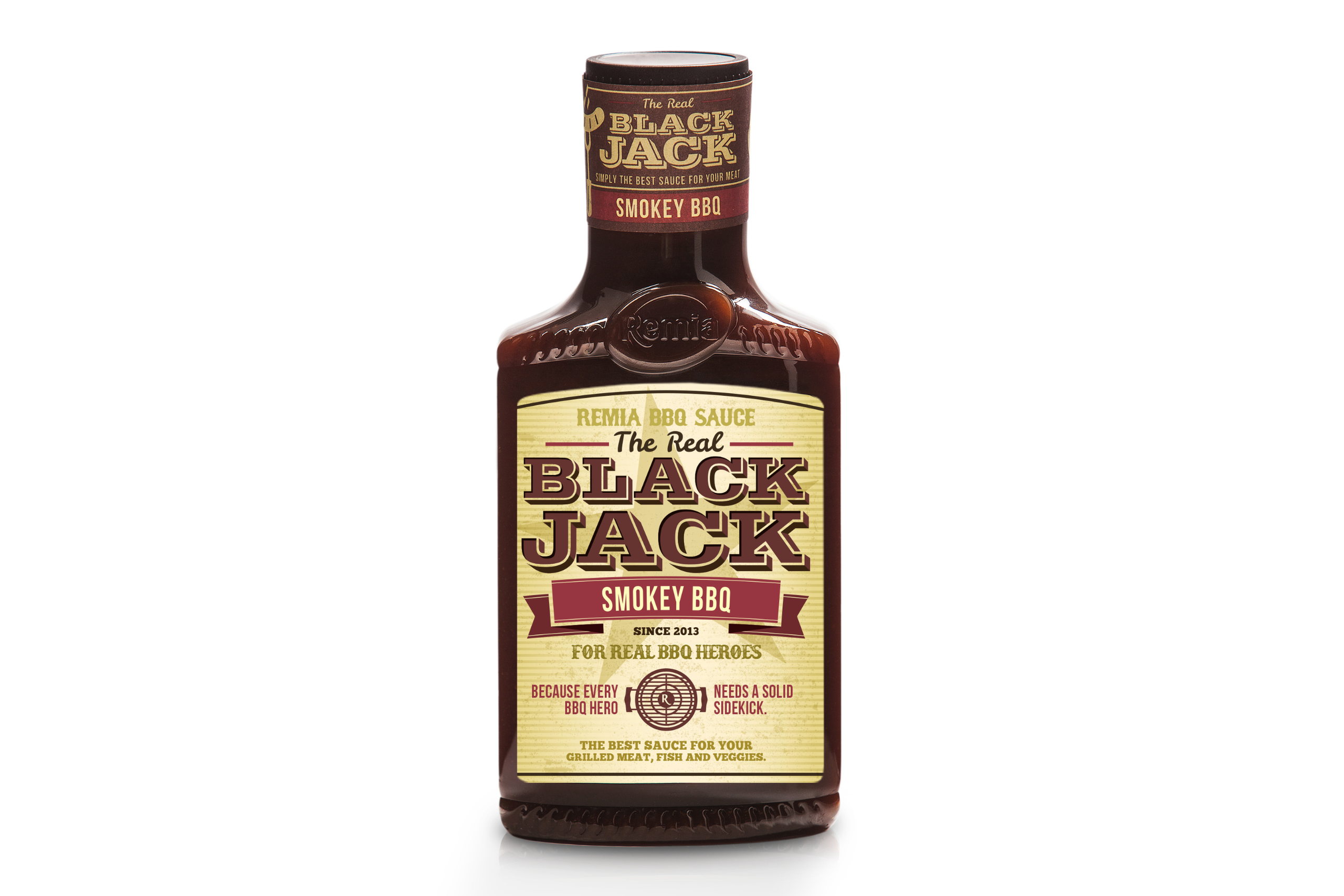 Remia Black Jack Smokey BBQ Sauce je silne dymová barbecue omáčka, ktorá skombinuje sladko-paradajkové tóny s jemným nádychom korenín a údenia. S výraznou chuťou melasy, horčice a karamelizovaného cukru sa ideálne hodí na grilované mäso, burgre aj ako dip k hranolkám či zeleninovým snackom. Hustá konzistencia zabezpečí, že si omáčka udrží svoju chuť aj pri pečení. Vegan, so silným charakterom a nulovým obsahom nasýtených tukov, ale so sladkosťou, ktorá poteší.